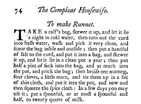 Today, it involves lots of metal in a factory and workers in masks and latex gloves, but in 1742, it was made at home by ladies with strong stomachs. Actually, they made it with newborn calf’s stomachs, as you can see (they call it a “bag”).